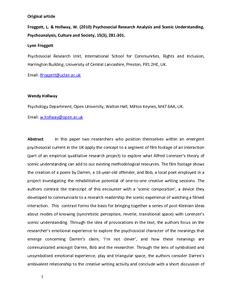 In this paper two researchers who position themselves within an emergent psychosocial current in the UK apply the concept to a segment of film footage of an interaction (part of an empirical qualitative research project) to explore what Alfred Lorenzer’s theory of scenic understanding can add to our existing methodological resources. The film footage shows the creation of a poem by Darren, a 16-year-old offender, and Bob, a local poet employed in a project investigating the rehabilitative potential of one-to-one creative writing sessions. The authors contrast the transcript of this encounter with a ‘scenic composition’, a device they developed to communicate to a research readership the scenic experience of watching a filmed interaction. This contrast forms the basis for bringing together a series of post-Kleinian ideas about modes of knowing (syncretistic perception, reverie, transitional space) with Lorenzer’s scenic understanding. Through the idea of provocations in the text, the authors focus on the researcher’s emotional experience to explore the psychosocial character of the meanings that emerge concerning Darren’s claim, ‘I’m not clever’, and how these meanings are communicated amongst Darren, Bob and the researcher. Through the lens of symbolised and unsymbolised emotional experience, play and triangular space, the authors consider Darren’s ambivalent relationship to the creative writing activity and conclude with a short discussion of the conceptualisation of unconscious processes suitable to a psychosocial data analytic methodology.