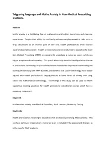 Maths anxiety is a debilitating fear of mathematics, which often stems from early learning experiences. Despite their ability to confidently perform complex numerical tasks, such as drug calculations, as an intrinsic part of their role, health professionals often disclose experiencing maths anxiety. Health professionals who have returned to education to study non-medical prescribing are required to undertake a numeracy exam, which can trigger symptoms of maths anxiety. This study explores the use of language in teaching and learning numeracy with non-medical prescribing students, and identifies that use of terminology more closely aligned with health professionals' language results in lower levels of anxiety than using school-like mathematical terminology. The findings of this study can be used to inform supportive teaching practices for health professional educational courses that have a numeracy component.