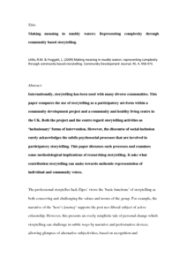 Making meaning in muddy waters: representing complexity through community based storytelling.