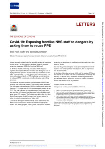 Covid-19: Exposing frontline NHS staff to dangers by asking them to reuse PPE.