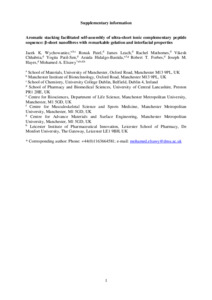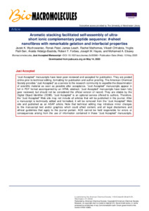 Wychowaniec, Jacek K., Patel, Ronak, Leach, James, Mathomes, Rachel Thelma orcid iconORCID: 0000-0002-1079-8509, Chhabria, Vikesh orcid iconORCID: 0000-0001-7812-7368, Patil-Sen, Yogita, Hidalgo-Bastida, Araida, Forbes, Robert Thomas orcid iconORCID: 0000-0003-3521-4386, Hayes, Joseph orcid iconORCID: 0000-0002-7745-9616 et al (2020) Aromatic Stacking Facilitated Self-Assembly of Ultrashort Ionic Complementary Peptide Sequence: β-Sheet Nanofibers with Remarkable Gelation and Interfacial Properties. Biomacromolecules, 21 (7). pp. 2670-2680. ISSN 1525-7797