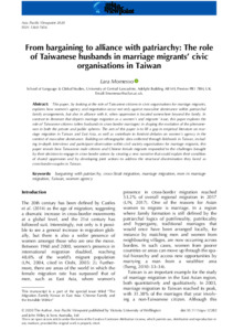 From bargaining to alliance with patriarchy: the role of Taiwanese husbands in marriage migrants' civic organisations in Taiwan.