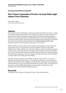 How Virtual Communities of Practice via Social Media might enhance Nurse Education.