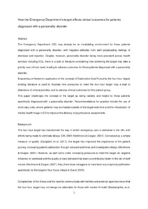 This paper challenges the concept of the target as being realistic and helpful to those patients specifically diagnosed with a personality disorder. Recommendations for practice include the use of short-stay units, where patients may be treated outside of the target wait time and the introduction of mental health triage in ED to improve the delivery of psychosocial assessments.