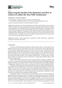 Batchelor, Paul and Kingsland, James (2020) Improving the Health of the Homeless and How to Achieve It within the New NHS Architecture. International Journal of Environmental Research and Public Health, 17 (11). e4100. ISSN 1661-7827