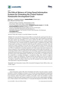Ryan, Mark, Antoniou, Josephina orcid iconORCID: 0000-0003-0169-1299, Brooks, Laurence, Jiya, Tilimbe, Macnish, Kevin and Stahl, Bernd (2020) The Ethical Balance of Using Smart Information Systems for Promoting the United Nations’ Sustainable Development Goals. Sustainability, 12 (12).