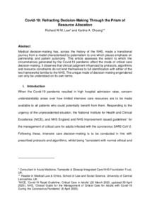 Covid-19: Refracting Decision-Making Through the Prism of Resource Allocation.
