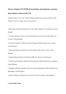 Adlan, Ahmed, Lim, Ven, Sastry, Sanjay, Dhillon, Gurpreet, Kurdi, Hibba, Doolub, Gemina, Elamin, Nadir, Aziz, Amir, Sastry, Sanjay et al (2020) Impact of COVID-19 on primary percutaneous coronary intervention centres in the UK: a survey. The British Journal of Cardiology, 27 . pp. 49-52. ISSN 0969-6113