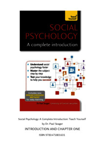 Written by Dr Paul Seager, a social psychology specialist who teaches at the University of Central Lancashire in Preston, Social Psychology: A Complete Introduction is designed to give you everything you need to succeed, all in one place. It covers key areas that students are expected to be confident in, outlining the basics in clear jargon-free English, and then provides added-value features like summaries of key studies, lists of questions to test your understanding of the concepts covered, and a 'Food for thought' section at the end of each chapter which challenges you to put the academic theories to practical use.