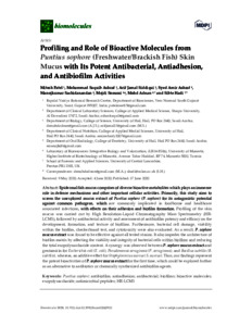 Profiling and Role of Bioactive Molecules from Puntius sophore (Freshwater/Brackish Fish) Skin Mucus with Its Potent Antibacterial, Antiadhesion, and Antibiofilm Activities.