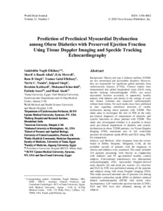 Prediction of Preclinical Myocardial Dysfunction among Obese Diabetics with Preserved Ejection Fraction Using Tissue Doppler Imaging and Speckle Tracking Echocardiography.