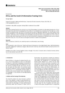 Africa faces a double Covid-19 crisis. At once it is a crisis of the pandemic, at another an information framing crisis. This article argues that public health messaging about the pandemic is complicated by a competing mix of framings by a number of actors including the state, the Church, civil society and the public, all fighting for legitimacy. The article explores some of these divergences in the interpretation of the disease and how they have given rise to multiple narratives about the pandemic, particularly online. It concludes that while different perspectives and or interpretations of a crisis is not necessarily wrong, where these detract from the crisis itself and become a contestation of individual and or sector interests, they birth a new crisis. This is the new crisis facing the continent in relation to the pandemic.