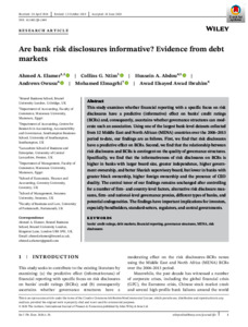 This study examines whether financial reporting with a specific focus on risk disclosures have a predictive (informative) effect on banks’ credit ratings (BCRs) and, consequently, ascertains whether governance structures can moderate such an association. Using one of the largest banklevel datasets collected from 12 Middle East and North African (MENA) countries over the 2006-2013 period to-date, our findings are as follows. First, we find that risk disclosures have a predictive effect on BCRs. Second, we find that the relationship between risk disclosures and BCRs is contingent on the quality of governance structures. Specifically, we find that the informativeness of risk disclosures on BCRs is higher in banks with larger board size, greater independence, higher government ownership, and better Shariah supervisory board, but lower in banks with greater block ownership, higher foreign ownership and the presence of CEO duality. The central tenor of our findings remains unchanged after controlling for a number of firm- and country-level factors, alternative risk disclosure measures, firm- and national-level governance proxies, different types of banks, and potential endogeneities. The findings have important implications for investors, especially bondholders, standard-setters, regulators, and central governments