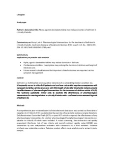 Alpha2 agonist dexmedetomidine may reduce duration of delirium in critically ill adults.