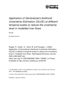 Ragab, Ragab, Kaelin, Alexandra, Afzal, Muhammad and Panagea, Ioanna (2020) Application of Generalized Likelihood Uncertainty Estimation (GLUE) at different temporal scales to reduce the uncertainty level in modelled river flows. Hydrological Sciences Journal . ISSN 0262-6667