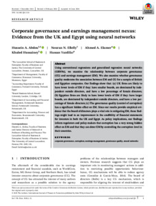 Corporate Governance and Earnings Management Nexus: Evidence from the UK and Egypt Using Neural Networks’.