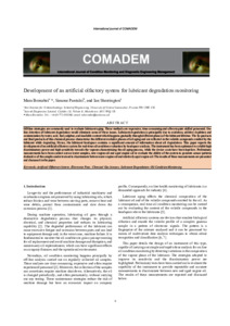 Development of an artificial olfactory system for lubricant degradation monitoring.