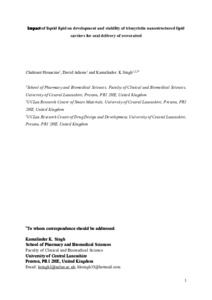 Impact of liquid lipid on development and stability of trimyristin nanostructured lipid carriers for oral delivery of resveratrol.