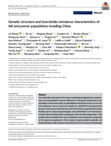Zhang, Lei, Liu, Bo, Zheng, Weigang, Liu, Conghui, Zhang, Dandan, Zhao, Shengyuan, Li, Zaiyuan, Xu, Pengjun, Wilson, Kenneth et al (2020) Genetic structure and insecticide resistance characteristics of fall armyworm populations invading China. Molecular Ecology Resources, 20 (6). pp. 1682-1696. ISSN 1755-098X