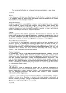 Purpose – A case study was undertaken to evaluate the use of self-reflection in enterprise education in a UK university, where the taught content was tailored to ensure relevance to the students who were from a variety of subject disciplines.