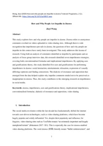 This study explores how and why people are impolite in danmu. Danmu refers to anonymous comments overlaid on videos uploaded to videosharing sites. Although there is wide recognition that impoliteness prevails in danmu, the questions of how and why people are impolite in this context have rarely been investigated. This study addresses this lacuna of research. Using both an analysis of comments identified as impolite by participants and an analysis of focus group interview data, this research identified seven impoliteness strategies, covering both conventionalised formulae and implicational impoliteness. By applying uses and gratifications theory, this study identified five uses and gratifications for performing impoliteness in danmu: social interaction, entertainment, relaxation, expression of (usually differing) opinions and finding connections. The dialectic of resonance and opposition that emerged from the data helped explain why impolite comments tended not to be perceived as inappropriate in danmu. Thus, this study contributes to the emerging research on impoliteness in social media.