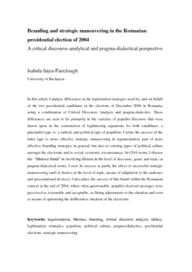 Branding and strategic maneuvering in the Romanian presidential election of 2004: A critical discourse-analytical and pragma-dialectical perspective.