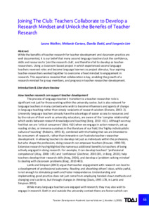 Walker, Laura, Carson, Melanie, Datti, Danila and Lee, Jungmin (2020) Joining The Club: Teachers Collaborate to Develop a Research Mindset and Unlock the Benefits of Teacher Research. Teacher Development Academic Journal, 1 (1). pp. 66-83.