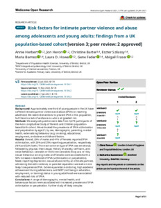 Risk factors for intimate partner violence and abuse among adolescents and young adults: findings from a UK population-based cohort.