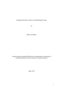 Mather, Barrie-Jon (2019) Changing Grass Roots Culture in Australian Rugby League. Doctoral thesis, University of Central Lancashire.