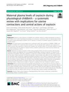 Uvnäs-Moberg, Kerstin, Ekström-Bergström, Anette, Berg, Marie, Buckley, Sarah, Pajalic, Zada, Hadjigeorgiou, Eleni, Kotłowska, Alicja, Lengler, Luise, Kielbratowska, Bogumila et al (2019) Maternal plasma levels of oxytocin during physiological childbirth – a systematic review with implications for uterine contractions and central actions of oxytocin. BMC Pregnancy and Childbirth, 19 (285).
