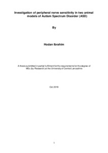 Ibrahim, Hodan (2019) Investigation of peripheral nerve sensitivity in two animal models of Autism Spectrum Disorder (ASD). Masters thesis, University of Central Lancashire.