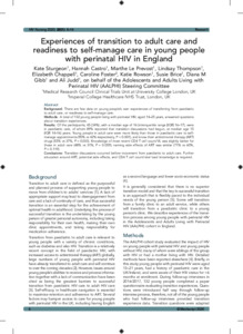 Background: There are few data on young people’s own experiences of transferring from paediatric to adult care, or readiness to self-manage care.
