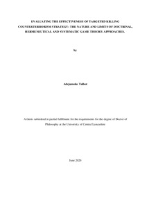 Talbot, Adejumoke (2020) Evaluating The Effectiveness of Targeted Killing Counterterrorism Strategy: The Nature And Limits of Doctrinal, Hermeneutical and Systematic Game Theory Approaches. Doctoral thesis, University of Central Lancashire.