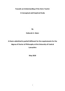 Slater, Deborah Anne (2020) Towards an Understanding of the Astro Tourist: A conceptual and Empirical Study. Doctoral thesis, University of Central Lancashire.