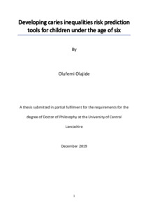 Olajide, Olufemi Olatunde (2019) Developing caries inequalities risk prediction tools for children under the age of six. Doctoral thesis, University of Central Lancashire.