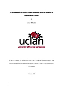 Mukadam, Almas (2020) An Investigation of the Effects of Trauma, Attachment Styles, and Resilience, on Intimate Partner Violence. Masters thesis, University of Central Lancashire.