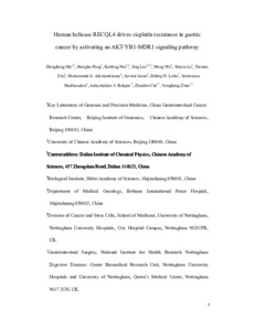 Human Helicase RECQL4 Drives Cisplatin Resistance in Gastric Cancer by Activating an AKT-YB1-MDR1 Signaling Pathway.