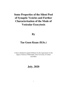 Kuan, Tae Guen (2020) Some Properties of the Silent Pool of Synaptic Vesicles and Further Characterisation of the Mode of Vesicular Exocytosis. Doctoral thesis, University of Central Lancashire.