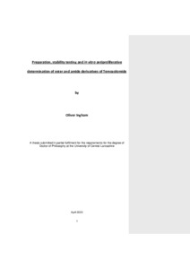 Ingham, Oliver (2020) Preparation, stability testing and in vitro antiproliferative determination of ester and amide derivatives of Temozolomide. Doctoral thesis, University of Central Lancashire.