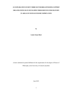 Hunt, Louise Susan (2019) AN EXPLORATION OF HOW THIRD SECTOR BREASTFEEDING SUPPORT ORGANISATIONS HAVE DEVELOPED THEIR SERVICES FOR DELIVERY IN AREAS OF SOCIO-ECONOMIC DEPRIVATION. Doctoral thesis, University of Central Lancashire.
