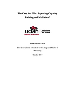 Kleinfeld-Fowell, Rita Marie (2019) The Care Act 2014: Exploring Capacity Building and Mediation? Masters thesis, University of Central Lancashire.