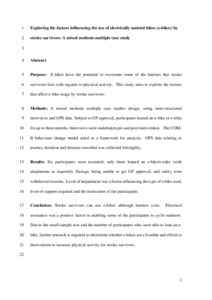 Exploring the factors influencing the use of electrically assisted bikes (e-bikes) by stroke survivors: A mixed methods multiple case study.