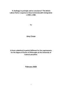 Cross, Amy (2020) ‘A challenge to principle and to conscience’? The British Labour Party’s response to New Commonwealth immigration c.1958-c.1968. Doctoral thesis, University of Central Lancashire.