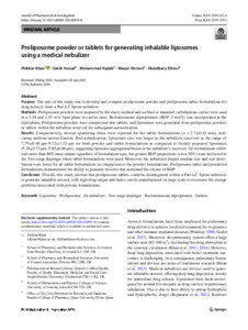 The aim of this study was to develop and compare proliposome powder and proliposome tablet formulations for drug delivery from a Pari-LC Sprint nebulizer.