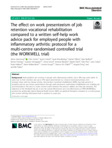The effect on work presenteeism of job retention vocational rehabilitation compared to a written self-help work advice pack for employed people with inflammatory arthritis: protocol for a multi-centre randomised controlled trial (the WORKWELL trial).