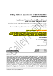 experiencing of inter-parental violence and prior experience with violence. The psychological and emotional implications were that some students became depressed and stressed, insecure, ideated suicide, feared sex, distrusted people and were worried and uneasy. Under physiological and health outcomes, some students contracted STDs and HIV, body injuries, became pregnant, and others lost or terminated their pregnancy. Furthermore, social implications were that some students became aggressive, went into self-isolation, and began living recklessly. Physical abuse, verbal abuse, sexual abuse and psychological or emotional abuse where the most common types of dating abuse found at the University of Zambia. Conclusively, In addition to awareness against gender based violence, youth friendly corners should be considered during the treatment of gender based violence in universities.