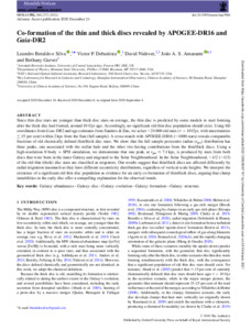 Beraldo E silva, Leandro orcid iconORCID: 0000-0002-0740-1507, Debattista, Victor P orcid iconORCID: 0000-0001-7902-0116, Nidever, David, Amarante, Joao A. S. and Garver, Bethany (2021) Co-formation of the thin and thick discs revealed by APOGEE-DR16 and Gaia-DR2. Monthly Notices of the Royal Astronomical Society, 502 (1). pp. 260-272. ISSN 0035-8711