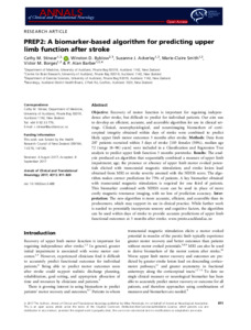 PREP2: A biomarker‐based algorithm for predicting upper limb function after stroke.