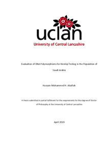 Alsafiah, Hussain Mohammed H. (2019) Evaluation of DNA Polymorphisms for Kinship Testing in the Population of Saudi Arabia. Doctoral thesis, University of Central Lancashire.