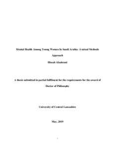 Al-Zahrani, Hissah (2019) Mental Health Among Young Women In Saudi Arabia: A mixed Methods Approach. Doctoral thesis, University of Central Lancashire.
